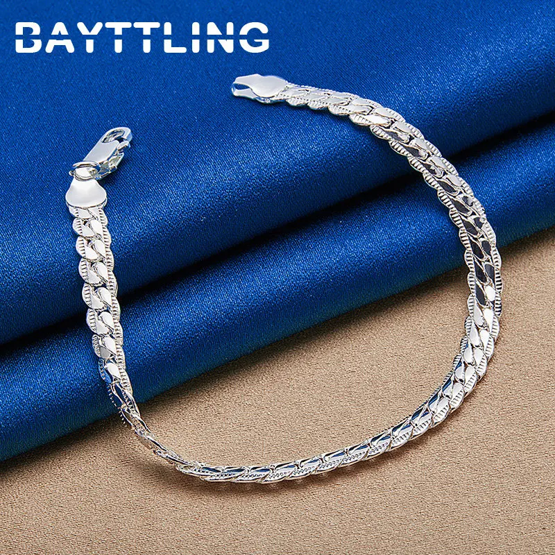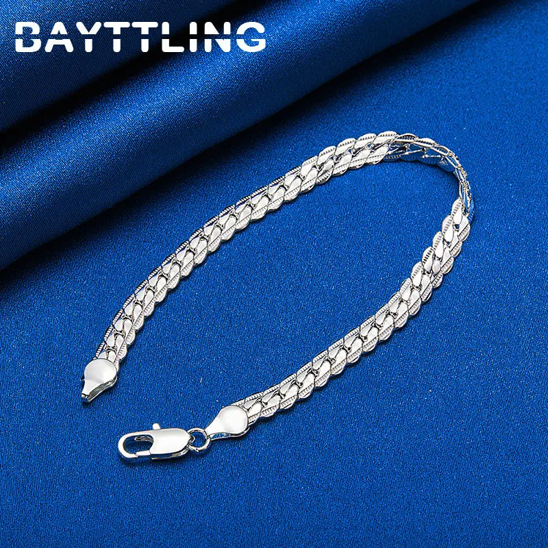 New 925 Sterling Silver 18K Gold 8 Inches 6MM Side Chain Bracelet For Women Fashion Charm Men Jewelry Gift Accessories