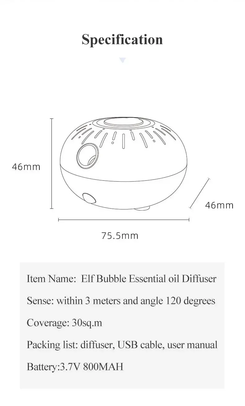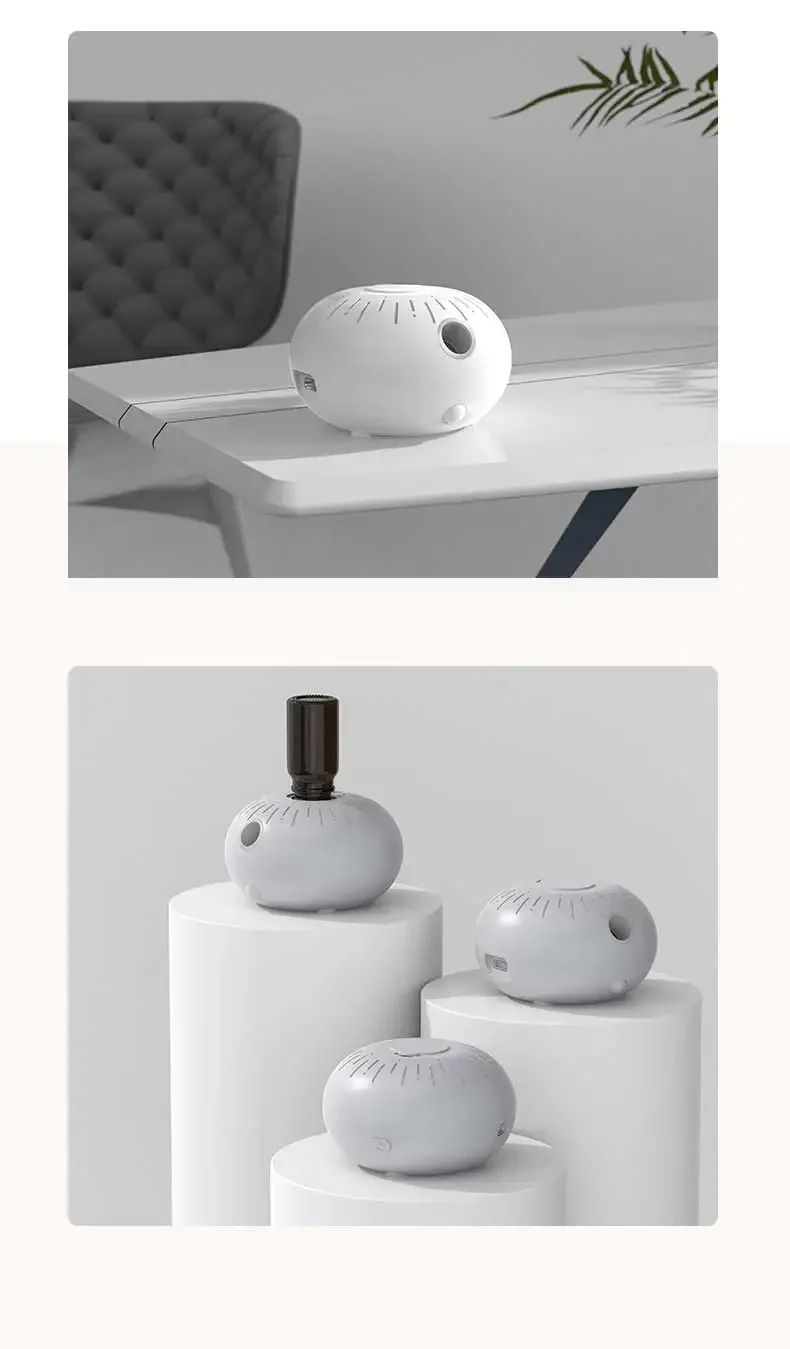 2. The sensor can intelligently sense within 3 meters and angle 120 degrees, and diffuser will automatically spray aroma. 3. No need to add water and work with low voice.