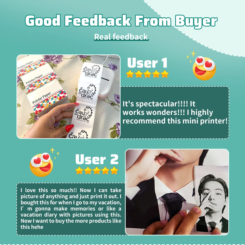 Notes:Customize printing contents with pictures, texts, tables, emojis and more freely to get unique printouts.